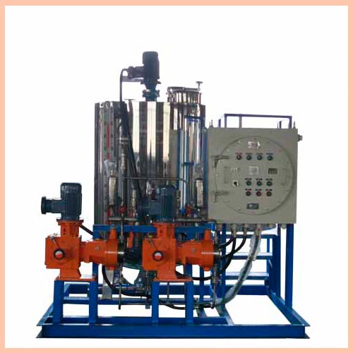 加藥裝置用于原水、凝結(jié)水、鍋爐水、脫鹽水等水處理系統(tǒng)。通過跟蹤熱力系統(tǒng)水汽品質(zhì)的變化,加藥計(jì)量泵自動(dòng)向水汽系統(tǒng)添加化學(xué)溶液,使系統(tǒng)水汽品質(zhì)處于良好的工作狀態(tài),保證機(jī)組的安全運(yùn)行。